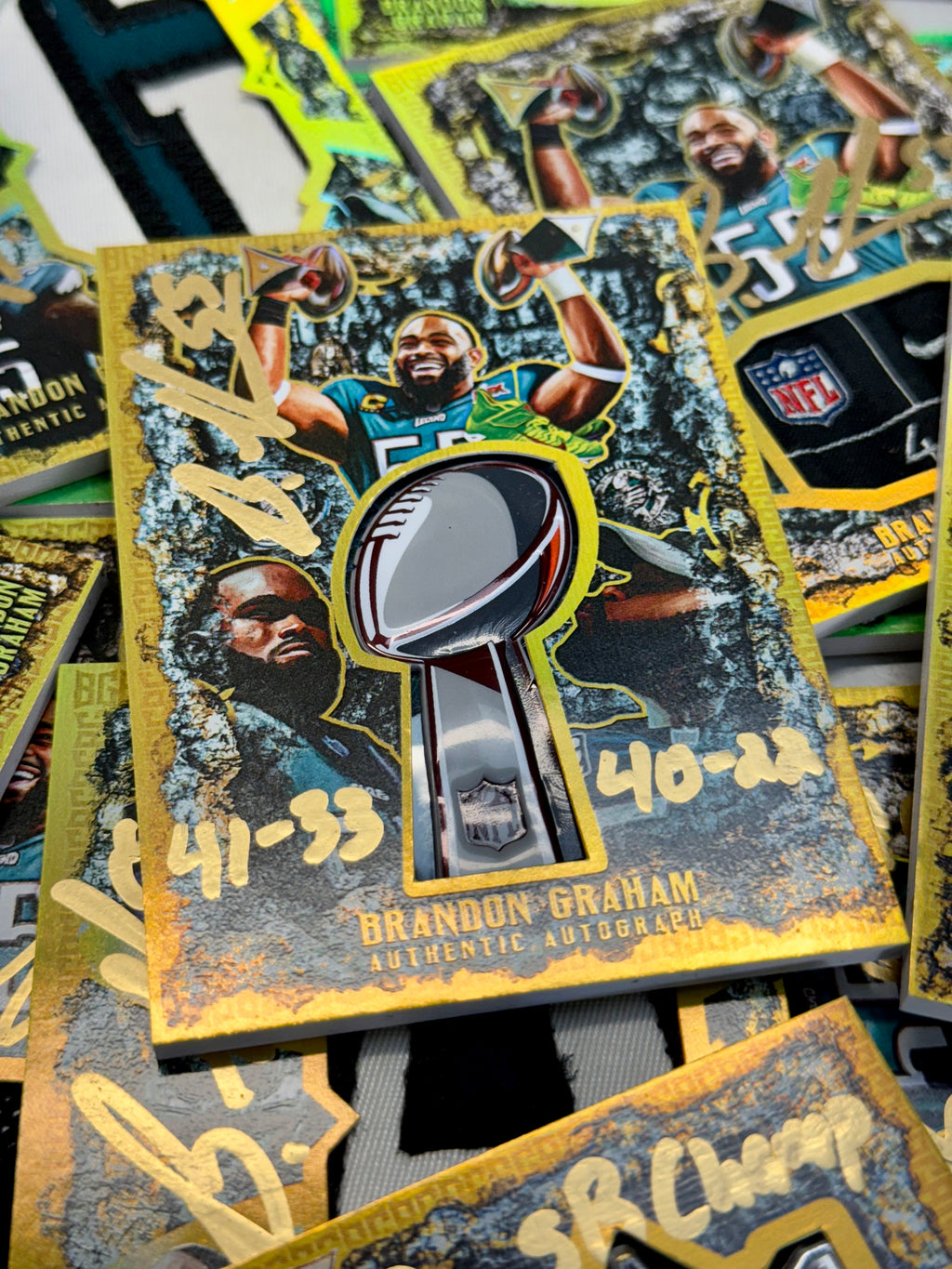 Every element is intentional: victory, legacy, and gratitude preserved in one frame. This is more than a relic card, it’s a time capsule of Brandon Graham’s relationship with Philadelphia, built to be discovered again and again.