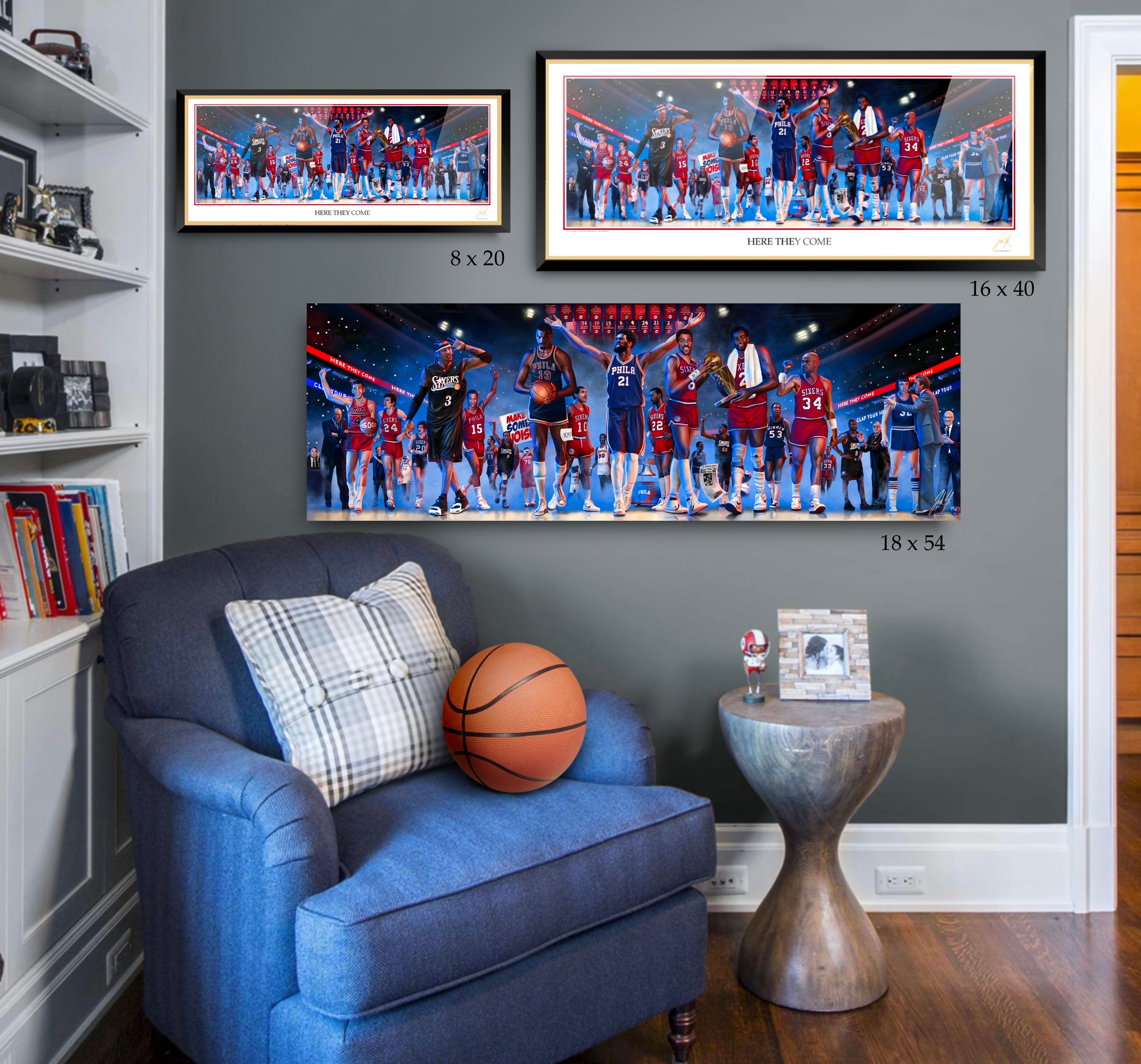 No piece of artwork has been created that represents all of the Philadelphia 76ers rich history, until now. Originally commissioned by a private client, I worked over 1 year to bring this vision to life. Between history research, picture research, fan surveys,  and interviews with some of the most well known Sixers fans & historians this was the final result. There are so many amazing players, coaches and fan favorites throughout the great history of the Philadelphia Sixers organization.